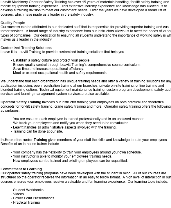 We provide several alternatives to help train your workers. In addition, we present you two choices for training. We can offer it on-site or at our location of business. Our ability to tailor our training methods to your equipment is what sets us apart from our competition.